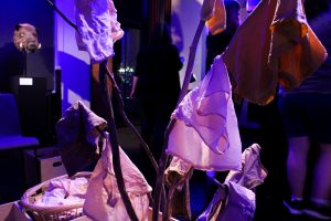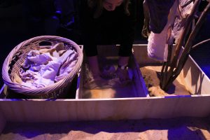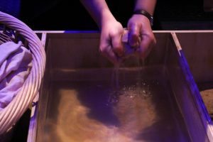 In the exhibition, I asked the audience to participate in this ritual. If comfortable, members were asked to remove their shoes, take an item of clothing, place it in the water, tread on it, wring it out and then hang it up to dry.
